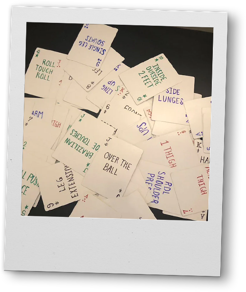 One day while Skylar was playing cards with his teammates, a lightbulb went off and he thought of a way to make training at home more fun and engaging! The next day he hopped on Amazon, ordered a blank deck of playing cards and got to work. Combining his professional knowledge of the game with his old arts and crafts skills, Skylar created a fun yet comprehensive deck of cards designed to work on key techniques and skills.