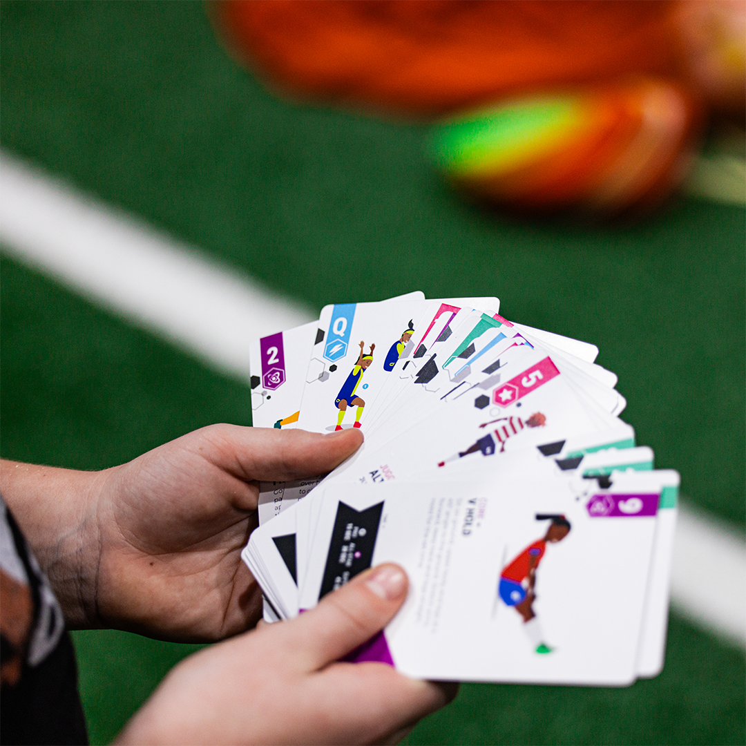 Amazing way to get kids and adults involved in the game. Deck of cards + soccer content = perfect.